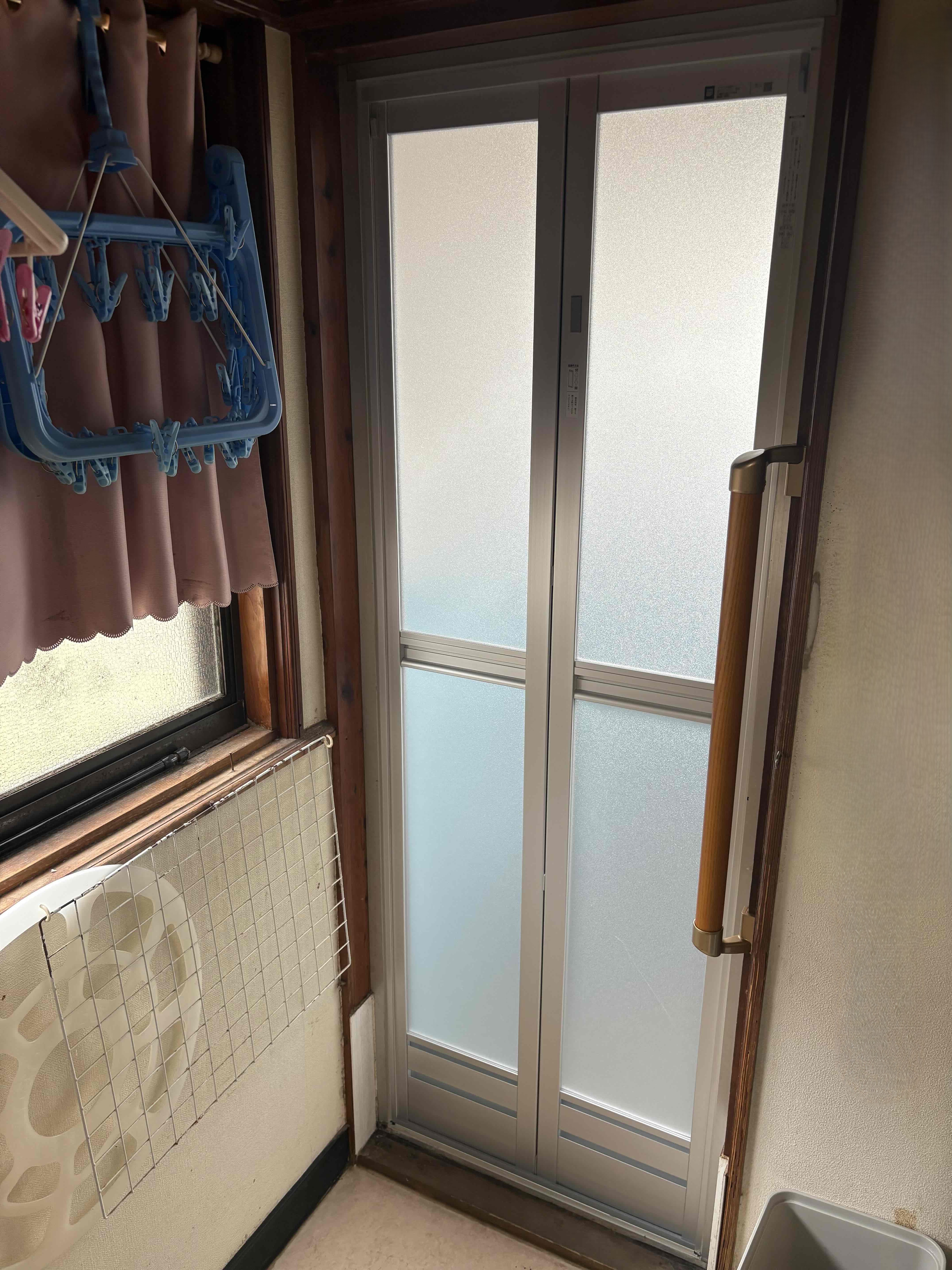 浴室内でシャワーチェアを使うにあたって浴室の出入口がドアでしたのでシャワーチェアがあるとドアを開けられず、お風呂を使うたびにシャワーチェアの出し入れが必要でした。またその作業を行うにも体の不自由さがあるためかなりの至難の業であったのです。またドアですと何もつかまずにドアを開けたときそのまま体重がかかった場合浴室内に身体ごと倒れてしまう恐れがありました。そこで出入口にていったん立ち止まり手摺をもち折れ戸を開けて浴室内に入れるように、また折れ戸ですのでシャワーチェアを置いたままでも開閉が可能になりました。また浴室内にも手摺を設置しました。少しでも安全にお風呂に入れるようにこういった住宅改修は必要です。https://www.murakamikenzai.com/contact