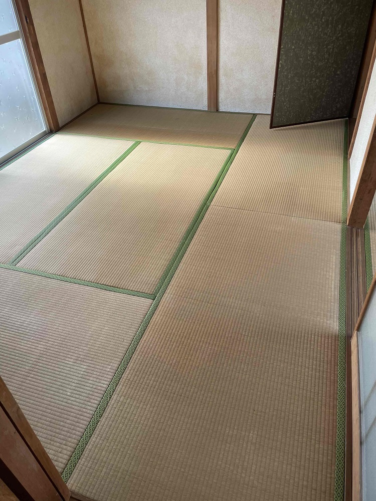 最近では和室そのものが無かったりすることも多いのですが新しい畳の匂いはいいものですね。だいぶ長く使われてた畳でしたが新しくなりました。畳を新しくすることでダニやカビの発生を抑えることにもつながります。すっきりとした気分で過ごせそうですね。https://www.murakamikenzai.com/contact