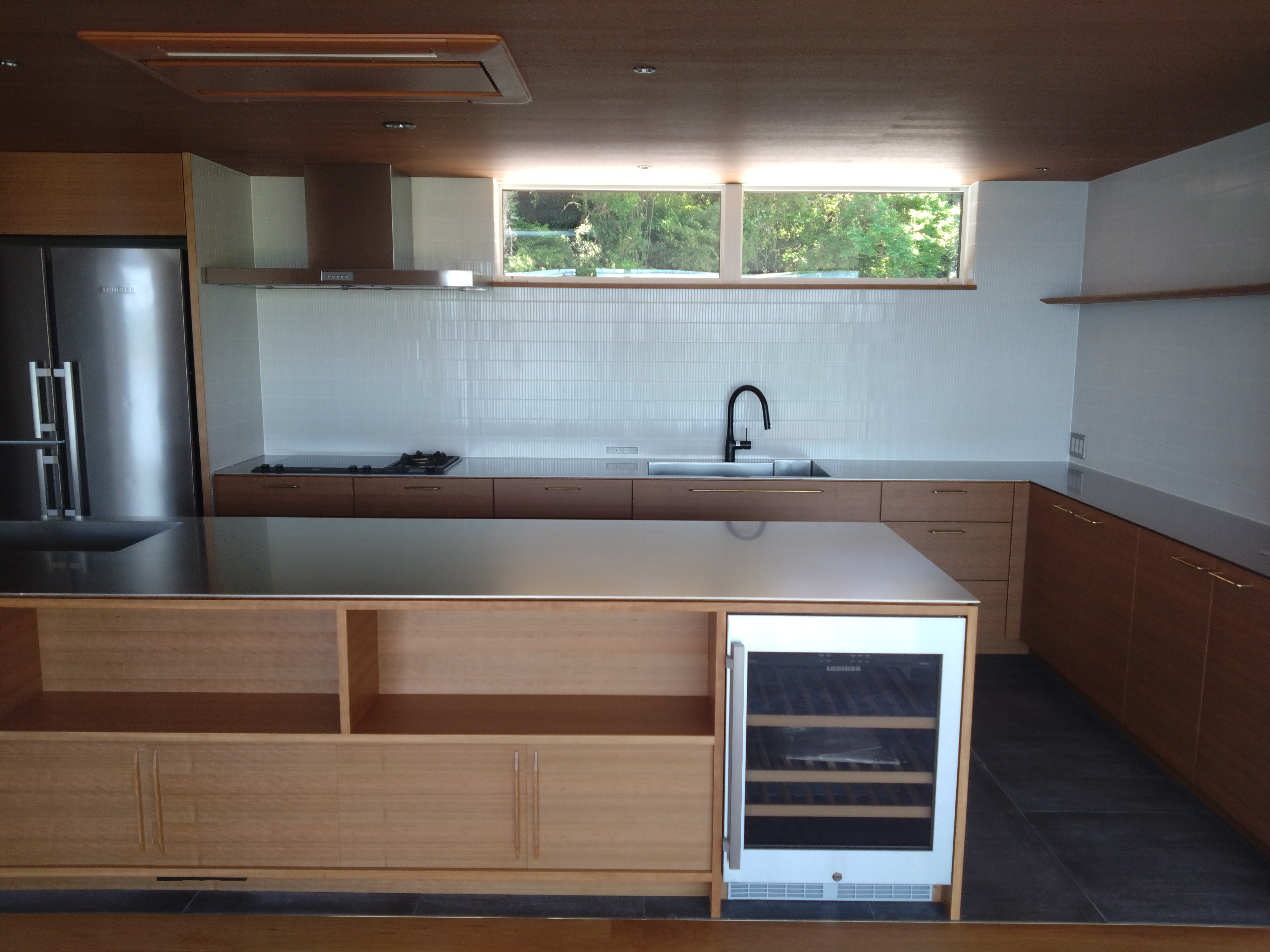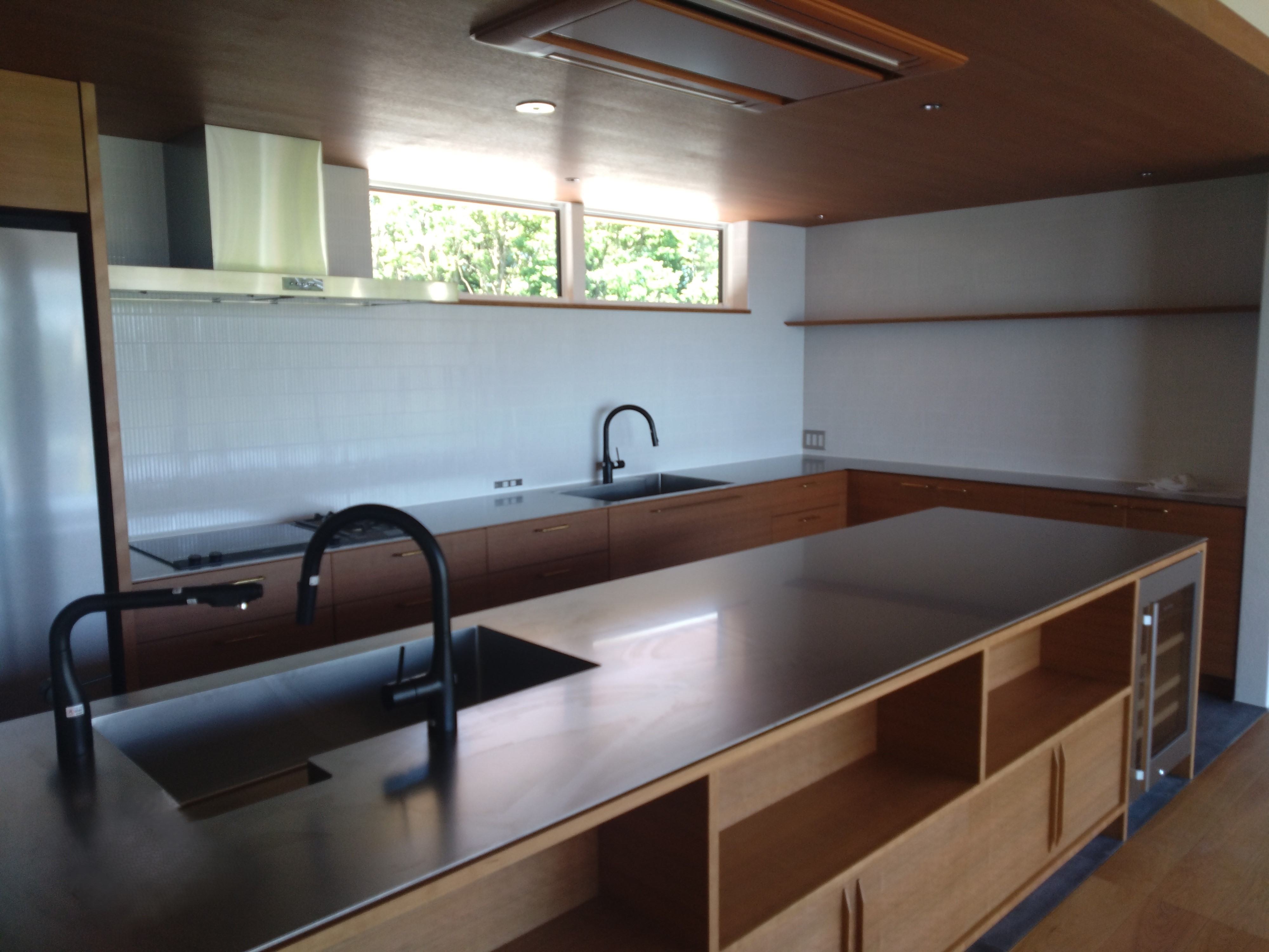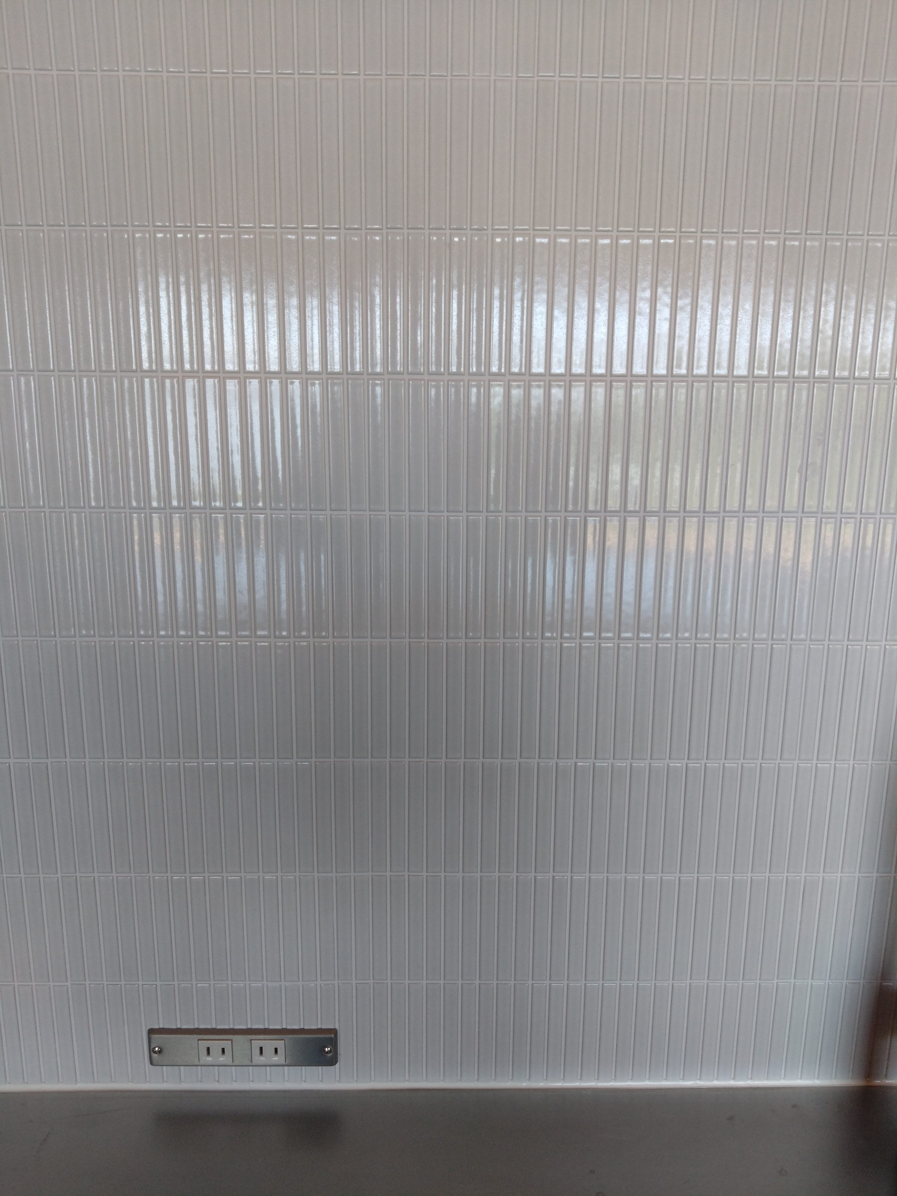 とある企業様の保養所だそうですが ステンレス天板のアイランドキッチンに内装の壁には白いLIXILの窯変ボーダーですっきりと洗練されたイメージを演出しました。https://webcatalog.lixil.co.jp/iportal/cv.do?c=16385470000&pg=159&v=LXL13001&d=newinter